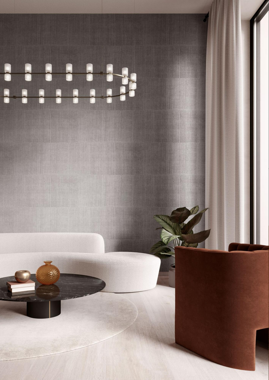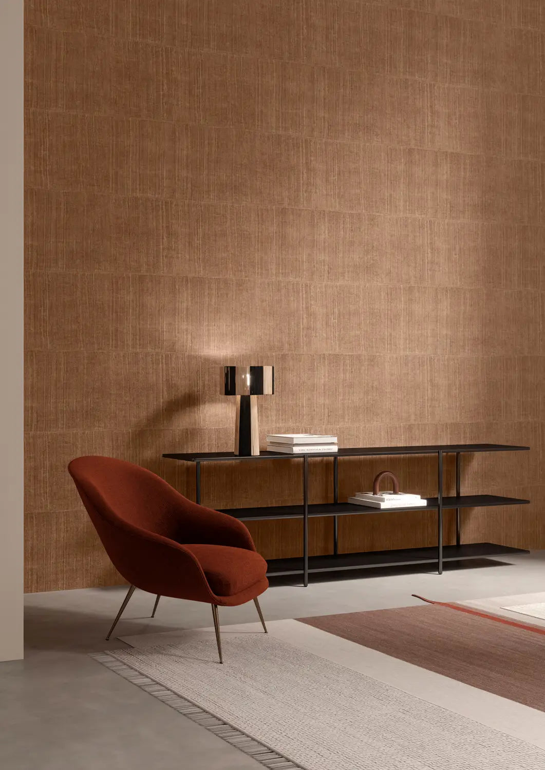 The Textura Ignis Katan Silk wallcovering by Arte International captures the delicate elegance of traditional Katan silk, a fabric long prized for its lightness, lustre, and fine craftsmanship. Every subtle irregularity, faithfully replicated, adds depth and authenticity to the design, bringing warmth and texture to contemporary interiors.