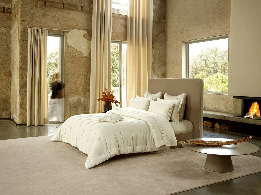 Our Savia Quilted Coverlet balances softness and durability, a lightweight and sustainable addition to your bedroom, combining the gentle feel of bamboo with artfully crafted hemming that beautifully complements the quilt’s delicate sheen.