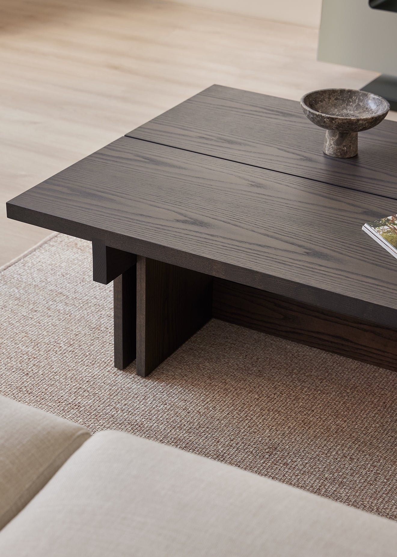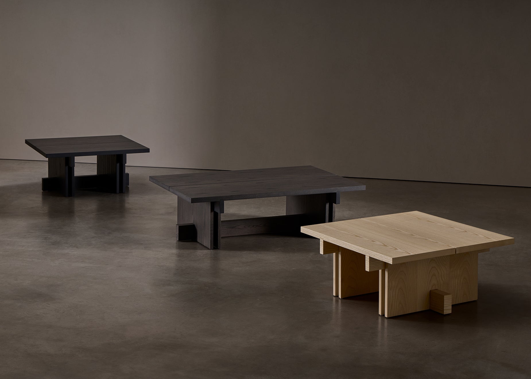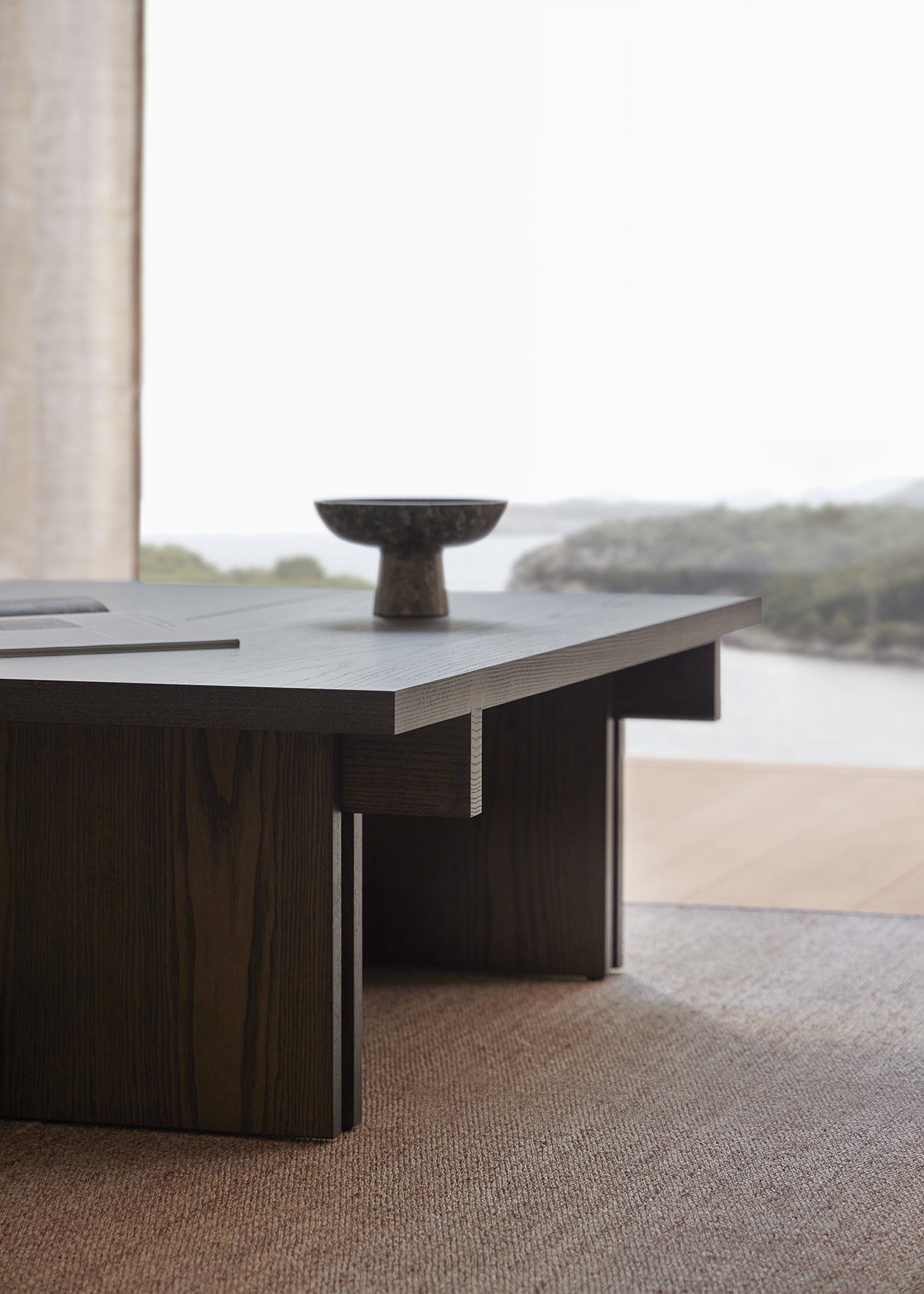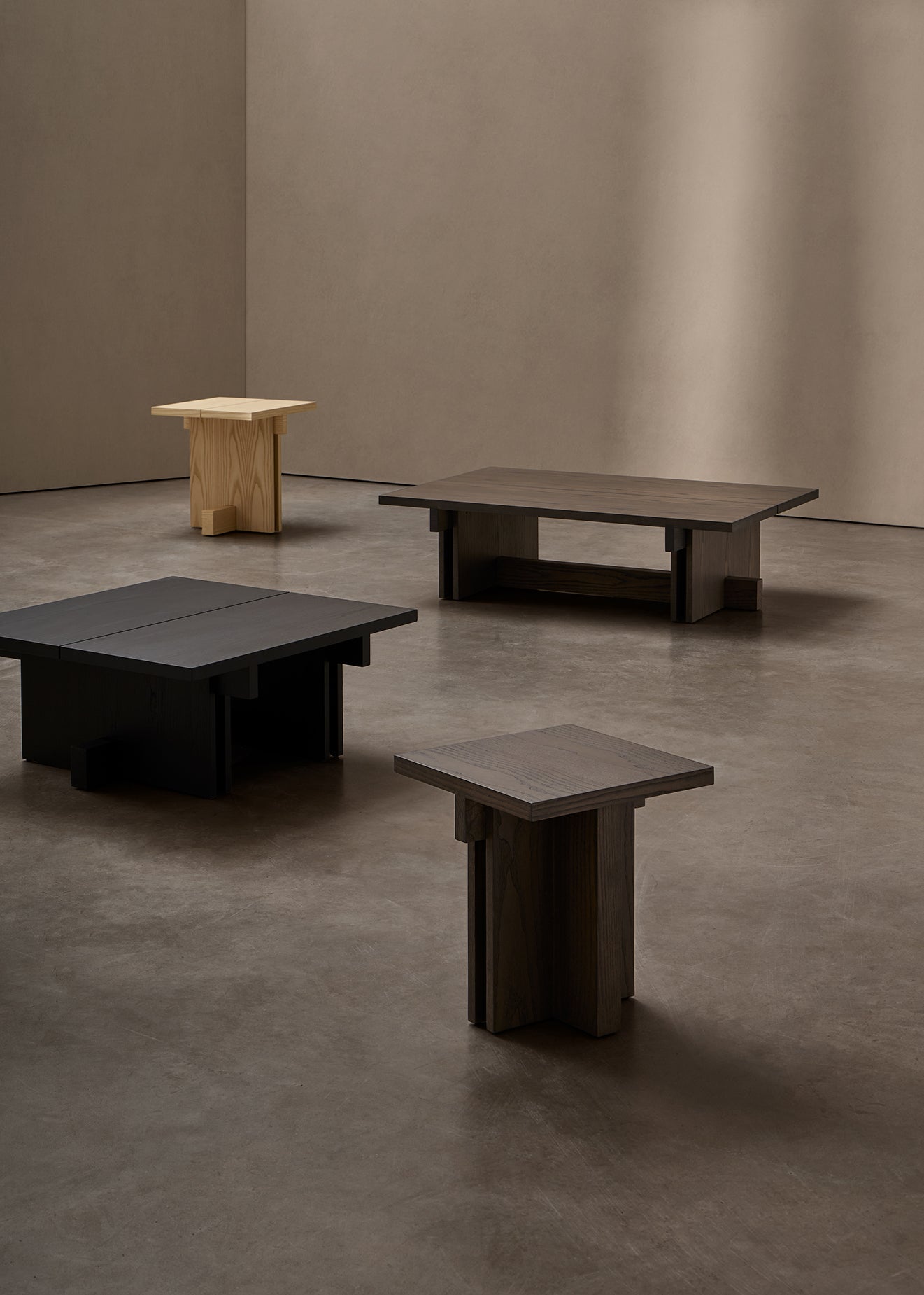 Where contemporary design meets timeless craftsmanship. The Rak tables, designed in ash wood, play with architectural volumes and geometric precision. Their overlapping planes and clean lines create a striking yet warm presence, adding character to any living space.