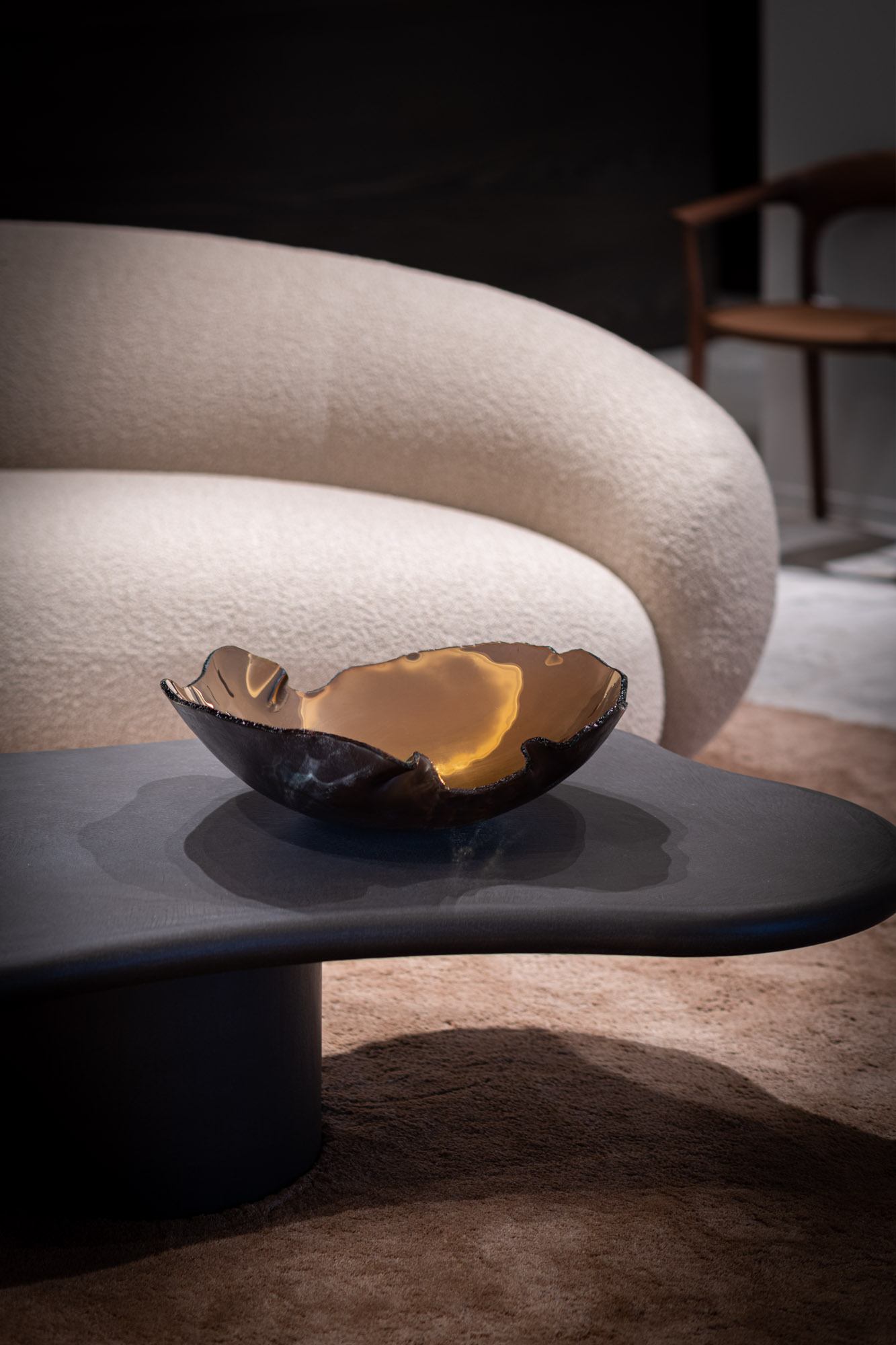 is a refined glass bowl by Regina Medeiros, a Brazilian glass artist who produces exceptional glass objects using a signature manufacturing technique.