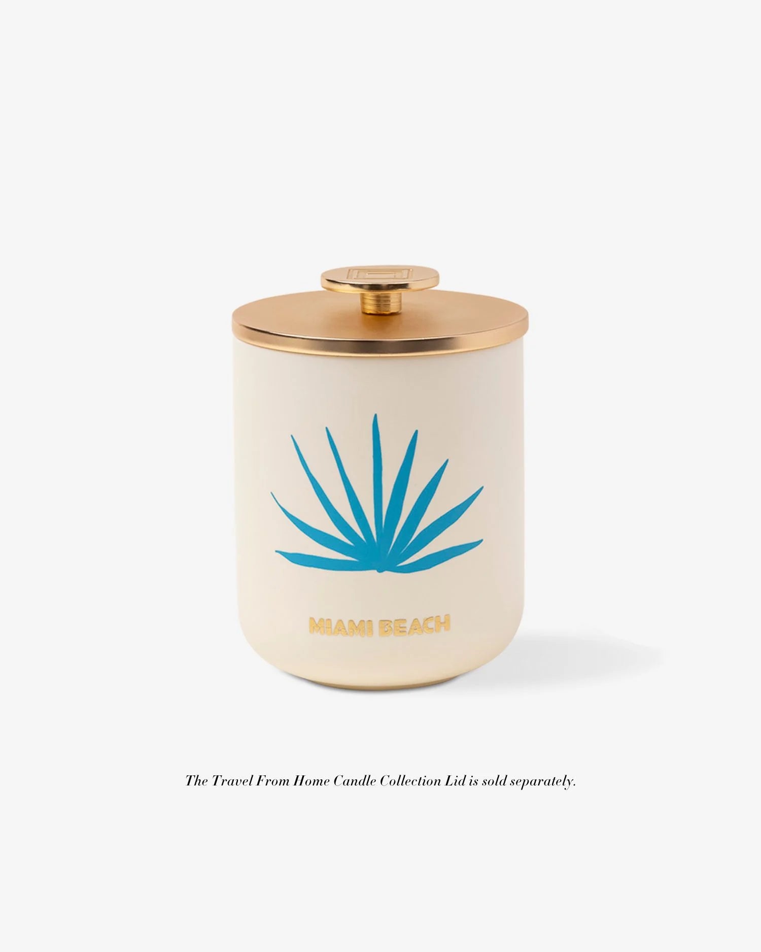 To complete the experience, the Miami Beach Travel from Home Candle evokes the city’s tropical allure through scent, with sun-drenched notes of bergamot, juicy peach and pistachio layered over sandalwood and white florals. It’s an invitation to live in an everlasting summer, where every breath feels like a beachside sunset.