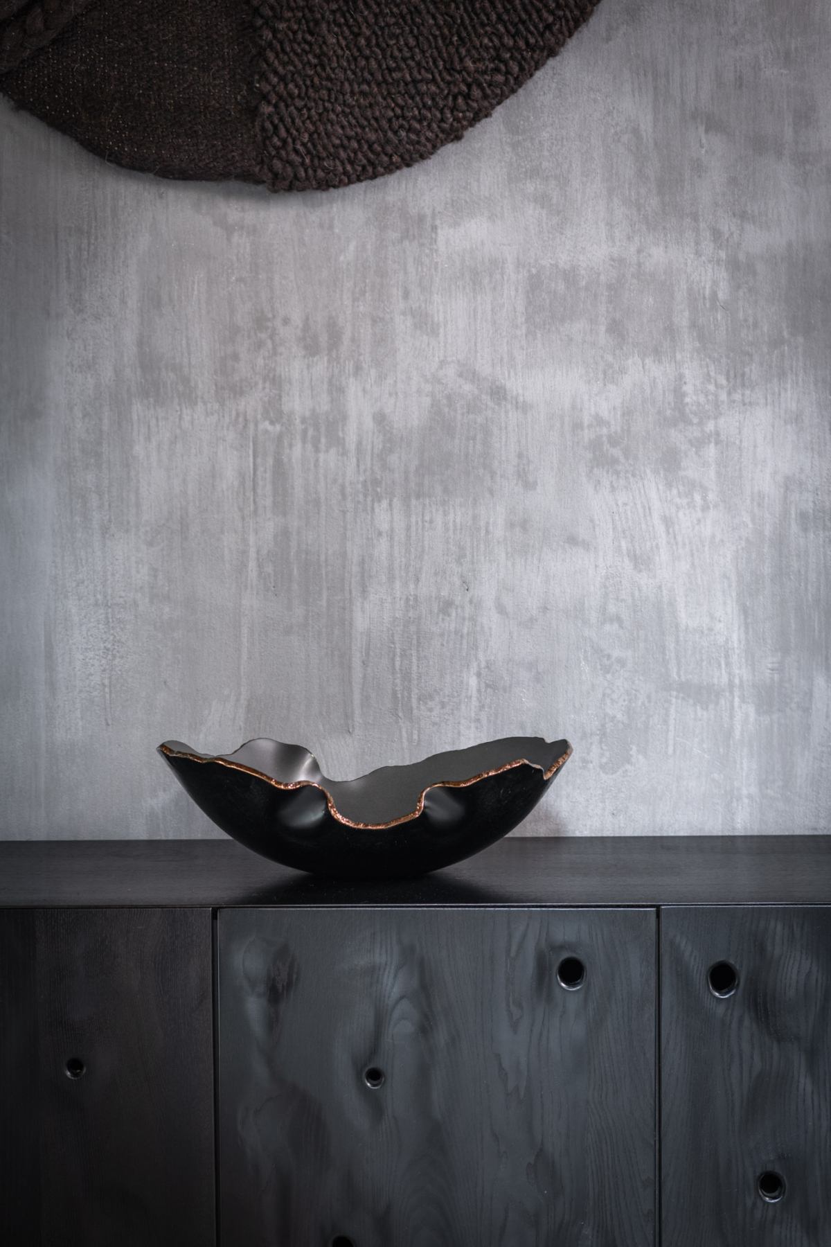 is a refined glass bowl by Regina Medeiros, a Brazilian glass artist who produces exceptional glass objects using a signature manufacturing technique.