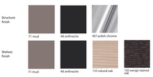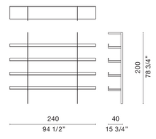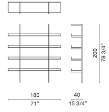 Materials: Wall bookshelves with metal structure and wooden shelves. Bookshelf is fixed to wall through an expansion hook (fischer).
