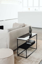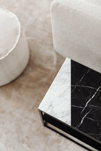 Materials: The top is a combination of white Carrara marble and black Nero Marquina marble. Legs in steel.