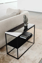 CUT MAXI is a console designed precisely to be used as a side table right by your sofa or as a piece of accessory furniture next to the wall. It has a steel shelf at mid-height to let you easily store all the things you want to keep on hand, such as books or magazines. The top of the console will make an excellent ornament for any interior.