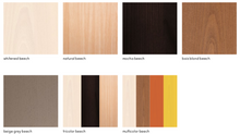 Materials: Coat stand composed of curved elements made from solid water-stained beech.