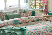 This pink crochet blanket is decorated with the Bonnuit design. This print is made up of a two-tone crochet pattern on the front and the same pattern in reverse colors on the back.
