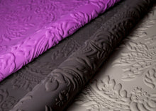 A damask motif is pressed into the fabric with creativity and care.