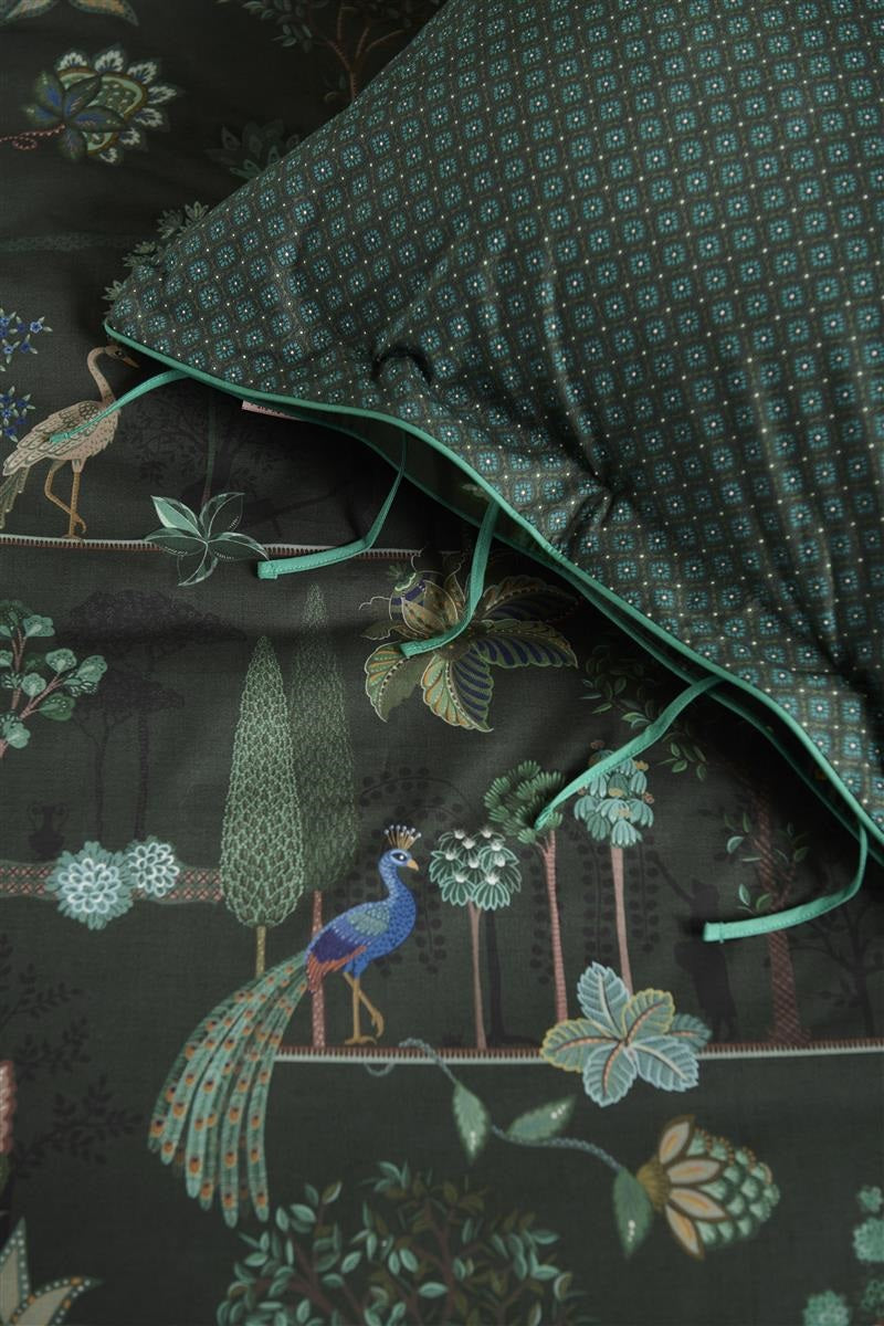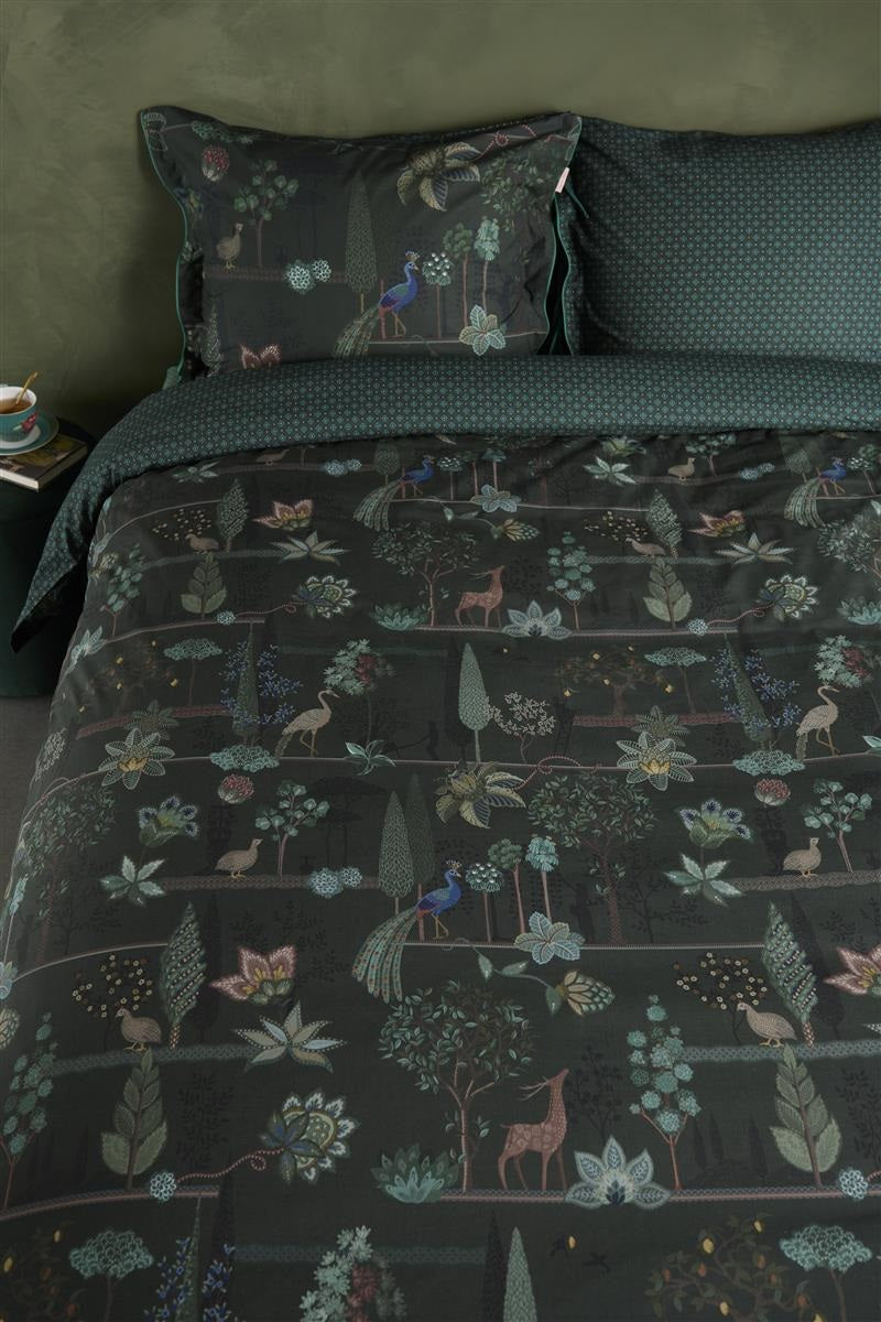 The Alberi duvet cover features a refined pattern of small flowers and leaves that together form decorative arches. The beautiful landscape print packed with surprising details.  They have a unique tie closure, giving the duvet cover and pillowcases an extra rich and luxurious look.