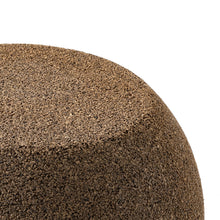 Stool or side table made from used corks. Cork comes from the bark of the cork oak tree, which is primarily found in Mediterranean countries such as Spain, Portugal, and Italy. The bark is harvested every 9-12 years, and the process does not harm the tree. It is a renewable resource and also biodegradable.