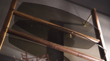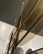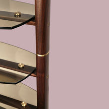 Materials: Structure in solid wood with brass details and tempered bronze glass.