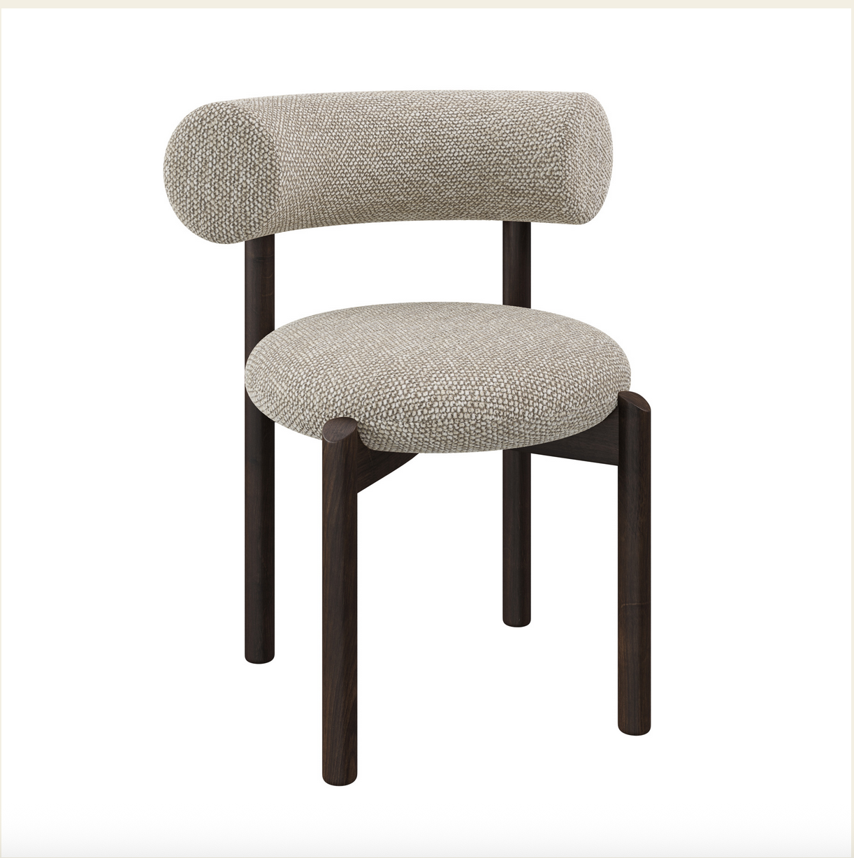 Expertly upholstered in select fabrics, it offers both softness and durability, while the gently rounded back provides exceptional comfort and support. Whether placed around a dining table or used as an accent piece in a contemporary living space, the Bow Chair adds an understated yet distinctive touch of design refinement.