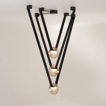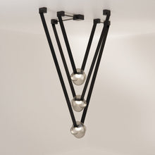 Etat-des-Lieux, a contemporary lighting system defined by its variable silhouette, pays homage to the scenic mountains and their majestic reflections in nearby waters.