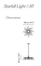 Live under the stars with Starfall Light by Front! The Starfall Light is a circular suspension light with a contemporary twist. Punctuated with 30 LED light sources, this upside-down chandelier brings perpetual star fall in your home. Thanks to 30 slim arms of different lengths, it not only resembles falling stars but also a starry night sky with dots of light at varying heights. A brand-new constellation waiting to be discovered!