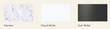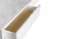 Materials: Carrara marble honed matte finish, feet in steel gun metal lacquered and satin finish.
