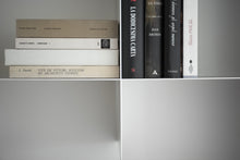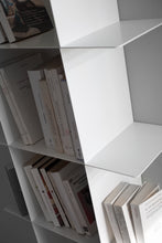 Innesto is a modular bookcase made of steel composed of a central module to be fixed to the wall and four shelves that fit perfectly into the module forming a square compartment scheme, with an elegant, contemporary design, but refined in its simplicity.