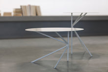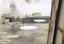 Minimal and airy design for these small round tables, with two different heights and with two different sizes of flat surface. Suitable for indoor and outdoor (except light gold and dark gold).