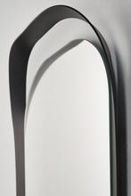 The design process started with a piece of paper. By bending the sides, a refined three-dimensional shape emerged. Its translation to a mirror is stunning: the frame forms a sculptural curve that encloses the oval mirror. The subtly framed mirror glass adds elegance to any interior, merging form and function with poetic charm. The mirror can be mounted in two directions.