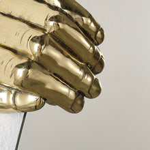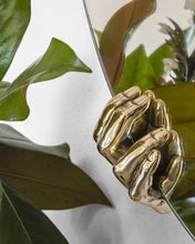 Selfie is a wall mirror with decorative hands in cast brass. The Selfie collection emphasizes the illusory dimension of the mirror and multiplies reality through a series of hands positioned on the edge of the mirrors creating different configurations.