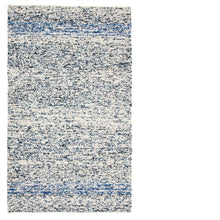 This stylish rug is artfully woven on a handloom using chunky pure New Zealand wool. The irregular nature of the wool yarn used is part of the character and charm of this rug, which features indigo and white twisted yarns with a band of bright cobalt interwoven at both ends. This interior rug has no additional backing, but we advise using an anti-slip underlay if the rug is placed on a smooth surface.
