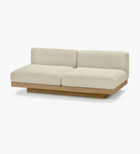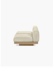 The two-seater from the Rudolph outdoor couch collection by Vincent Van Duysen combines texture, warmth, and tactility. With an aluminum frame covered in solid oak and custom-made Belgian fabrics available in neutral colors, this two-seater offers both comfort and simplicity. Pair it with the one- and three-seaters, as well as the ottoman, for an organic and super comfortable luxury outdoor sofa setup. Protective covers for the outdoor furniture are also available and highly recommended for rainy days.