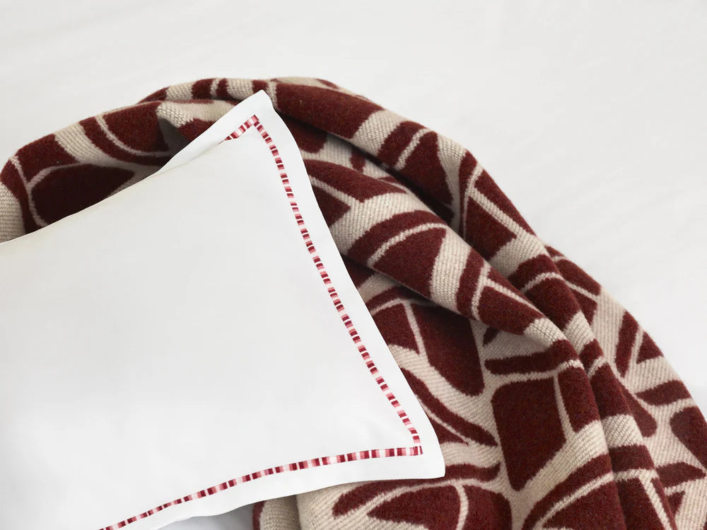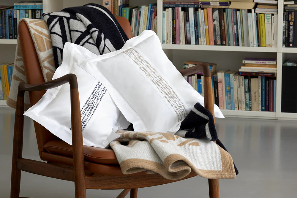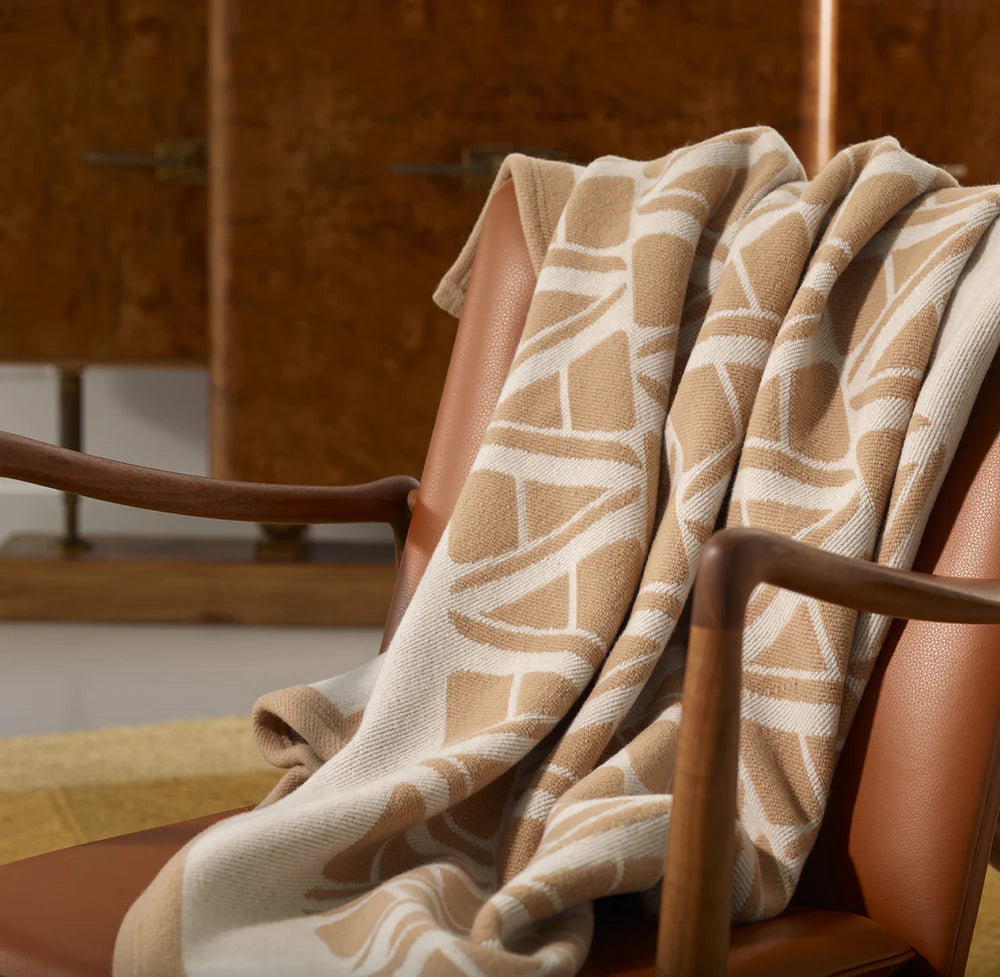 Keep cozy at home with our new Ama throw blanket, a luxurious piece made from 100% wool and covered with a chic, contemporary pattern of clean lines and angles. Made in Portugal.
