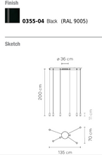 The elegant structure of fine cables and LED terminal by Wireflow allows the combination of multiple individual pieces to carry out major graphic lighting installations which generate a visual opportunity of lines and points of light and bring a markedly conceptual character to an intangible product. The electrical connection point can be positioned on the ceiling or wall.