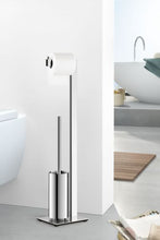 The toilet butler is always at your service, because everything is ready to hand in your chosen place.The butler hands you the toilet paper and a small nib at the end of the unwinding bar holds the paper roll in place. The toilet brush with an exchangeable brush head has a long handle. The extra-high brush container stops you seeing too much and, if necessary, the container can be completely removed. An additional, removable inner container made of plastic makes cleaning easier. The heavy base plate ensures a secure stand and rubber feet protect sensitive floors.