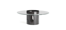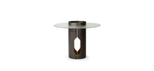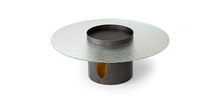 Aliso was born due to Luca's attention to details and research of materials. The curved metal base forms a cylinder that almost seems to go beyond the glass top creating a tray.