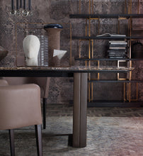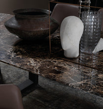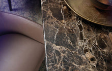 The B130 table made of top quality materials such as marble for the top and genuine leather for the frame covering, is an extremely elegant piece within a refined and elegant furnishing scheme.