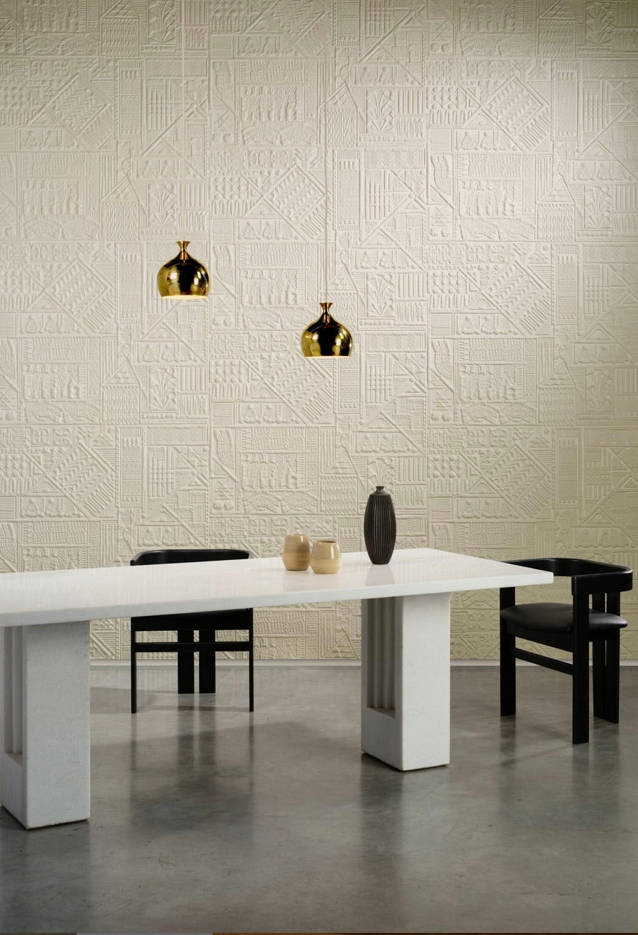 This wallcovering is a rich and lively design inspired by the organic layout of a bustling city, with a positive acoustic effect.