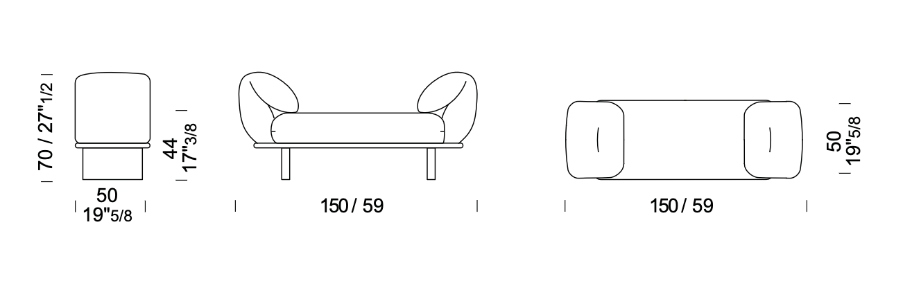 Size: 150 x 50 x 70 h (59" x 19"5/8 x 27"1/2 h)