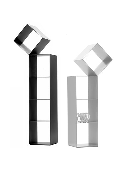 An ingenious challenge against the force of gravity, the Drop, by Nendo, is a two-sided column bookshelf offered in 3 different heights. The sophisticated shorter version is also perfect as a bedside table.