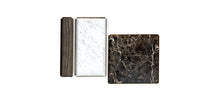 Materials: trays with marble top and metal frame available in different finishes.
