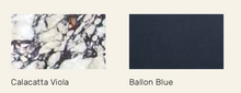 Materials: Structure in aluminum ballon blue lacquered and satin finish. Marble top with honed matte finish.