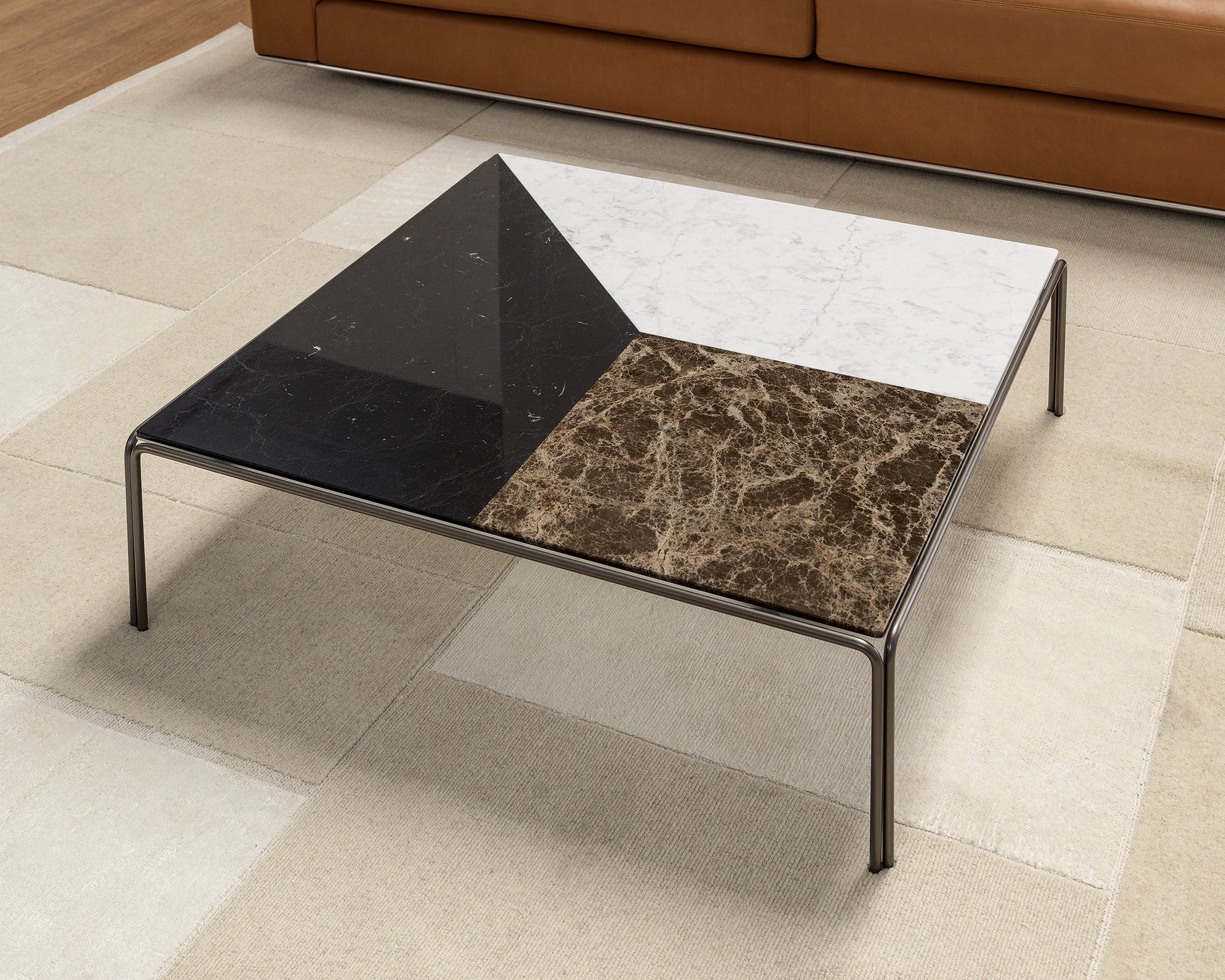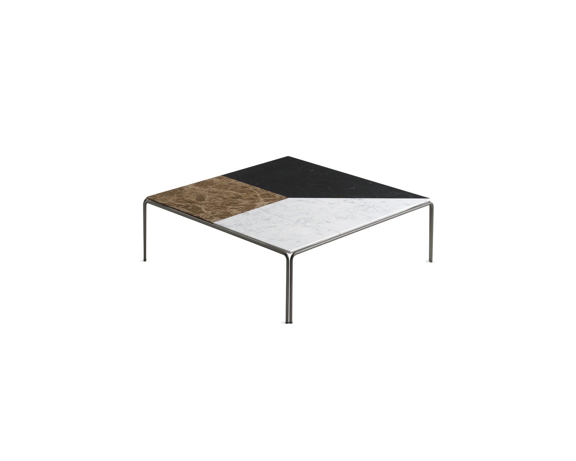 Materials: Structure in bronze painted metal. Top in Carrara, Emperador and Marquina marble.