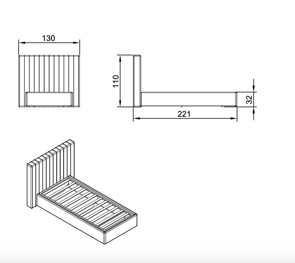 cm 210 headboard x 221 x H.110 (mattress 180x200 cm)