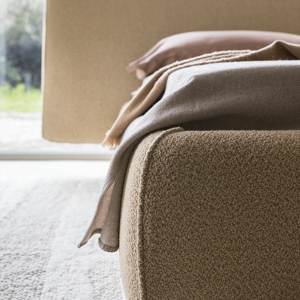 The Rio bed is more than just a place to sleep – it’s a true design statement. Sculptural and architectural in form, its upholstered base appears to be carved to perfectly support the bold, angled headboard. This inclination not only enhances its dramatic silhouette but also provides an ergonomic position for reading or relaxing in comfort.