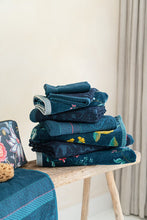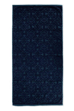 Opt for a luxurious bath experience with this dark blue Tile de Pip towels. The fabric feels super comfortable, while the design will look truly elegant in any bathroom. The bath towels feature a tonal, woven tile print with high-low effect. The edges are finished with a woven stripe in two colours.